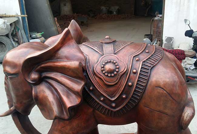 铜大象是我公司为客户提供订做的动物铜像铸造,我们从事动物雕塑制做,可以制做各种大小的铜大象作品,小至摆件,大至几十米大型雕塑,采用纯铜铸造的成对象造型美观,两只相互呼应,表面进行了鎏金处理,摆放后给人高档的感觉。因大象自身憨厚感很强,所以表达诚实忠厚之意。在传统文化中又以象来与祥谐音表达吉祥之意,所以在客厅、商铺、商业街等等场所,均适合摆放。